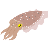 甲羅のある変わったイカ、クブシミ(和名:コウイカ、コブシメ)のイラストです。